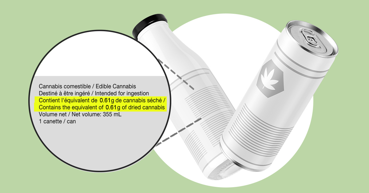 La Loi sur le cannabis stipule qu’un(e) adulte peut posséder jusqu’à 30 grammes de cannabis séché en public. Or, comment pouvons-nous calculer la limite de possession pour les produits de cannabis dérivés, comme les boissons?